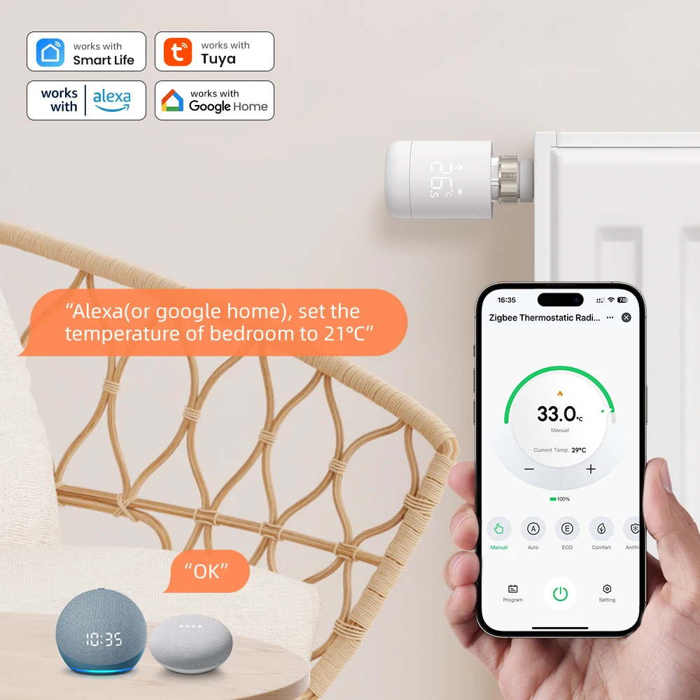 AVATTO Zigbee Heizkörper-Thermostatventil – Smart TRV mit Temperatursteuerung, kompatibel mit Alexa & Google Home